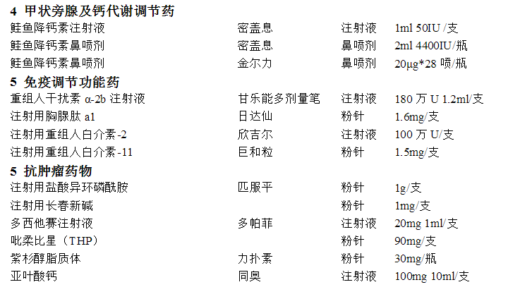 酒石酸長春瑞濱注射液 (H )    鮭降鈣素注射液(H)