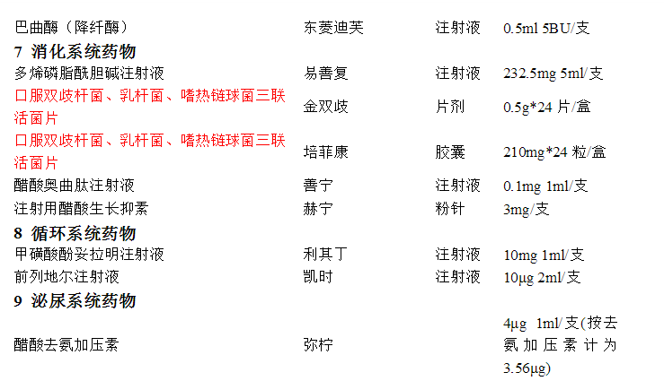 硝酸一葉秋堿注射液(H)       注射用兩性霉素B脂質體(H) 注射用尿激酶(H)              巴曲酶注射液(H)