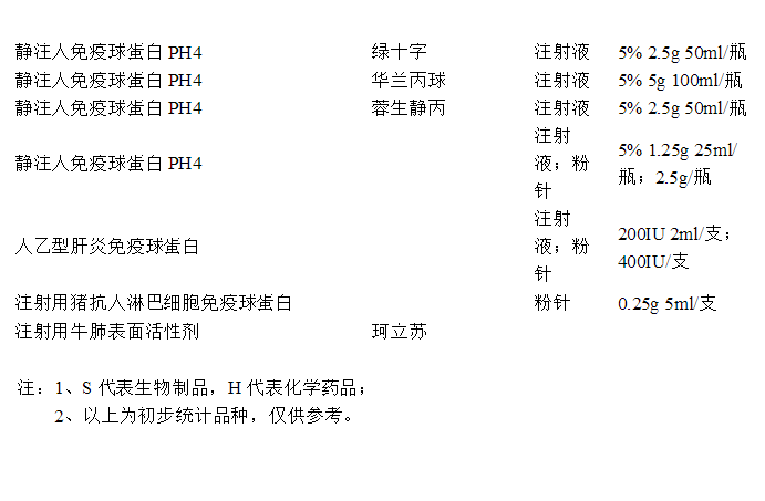 人血白蛋白(S)(5年(2~8℃)、3年(室溫不超過30℃)) 西妥昔單抗(S)(2~8℃下可保存12小時以上,20~25℃下可保存8小時以上) 亞葉酸鈣注射液(H)            注射用頭孢哌酮鈉(H)